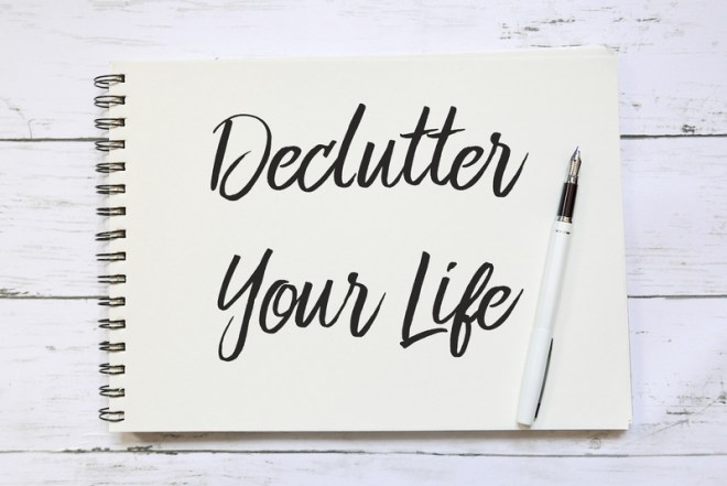 Previous Image Top view of pen and notebook written with Declutter Your Life on wooden background. Top view of pen and notebook written with Declutter Your Life on wooden background.
